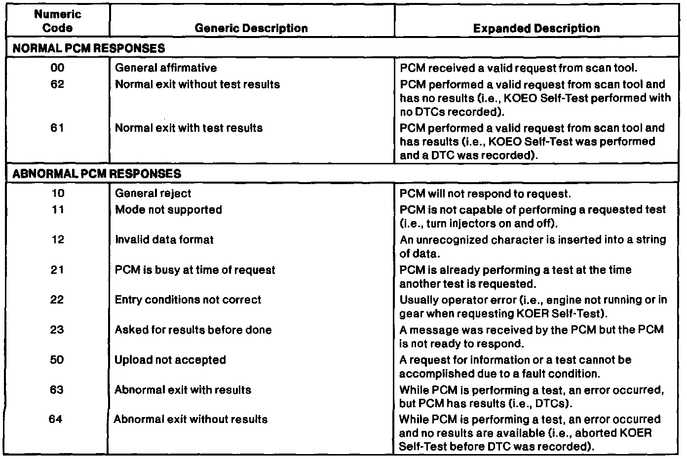 Communication Error (Normal and Abnormal PCM Responses)