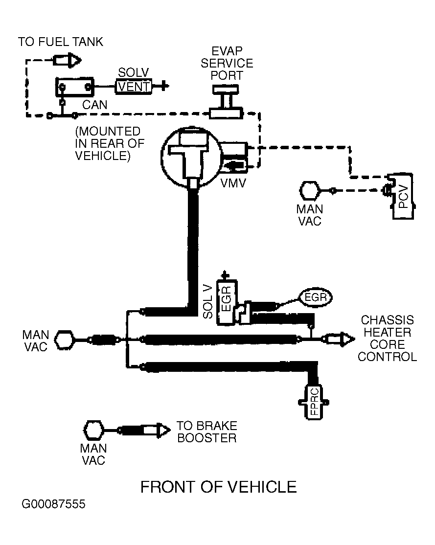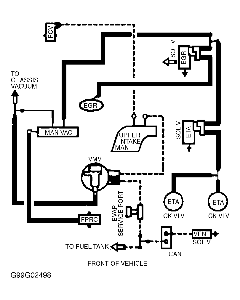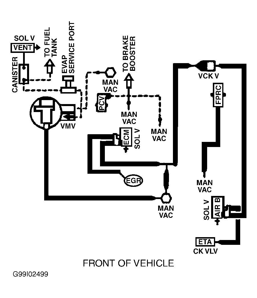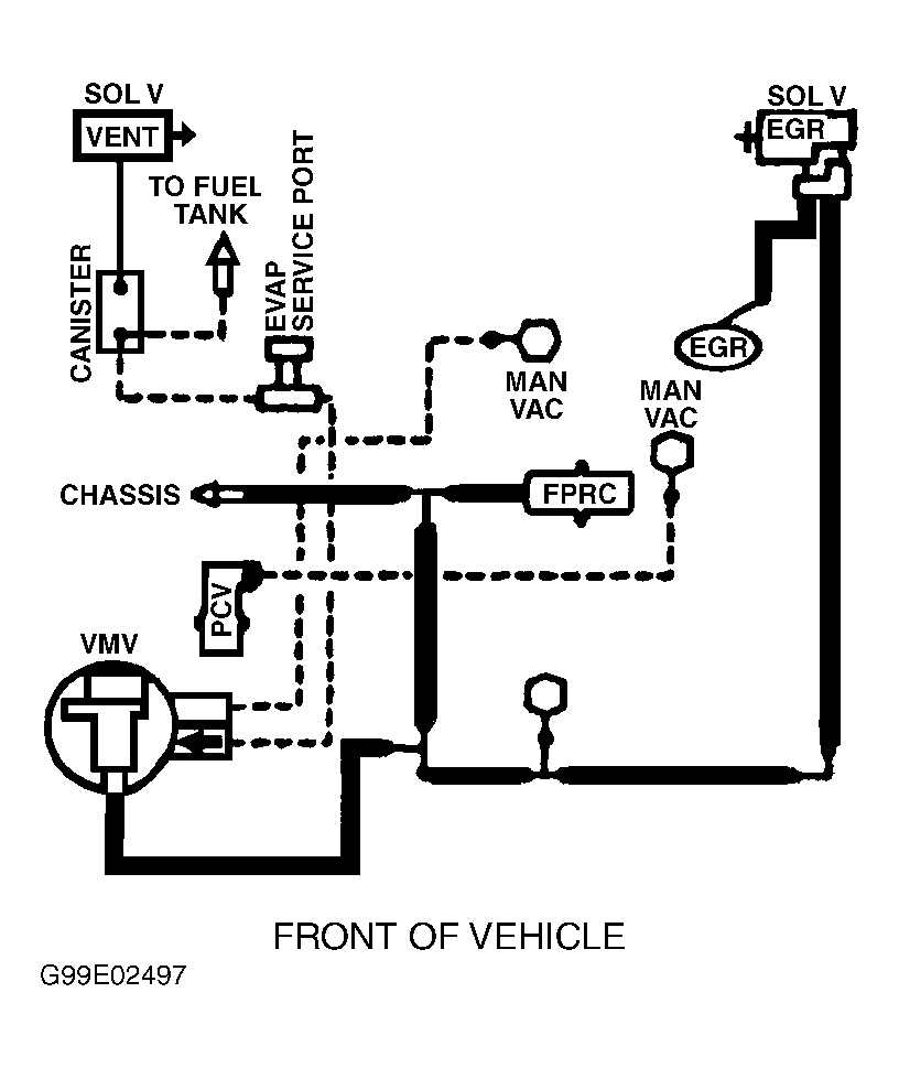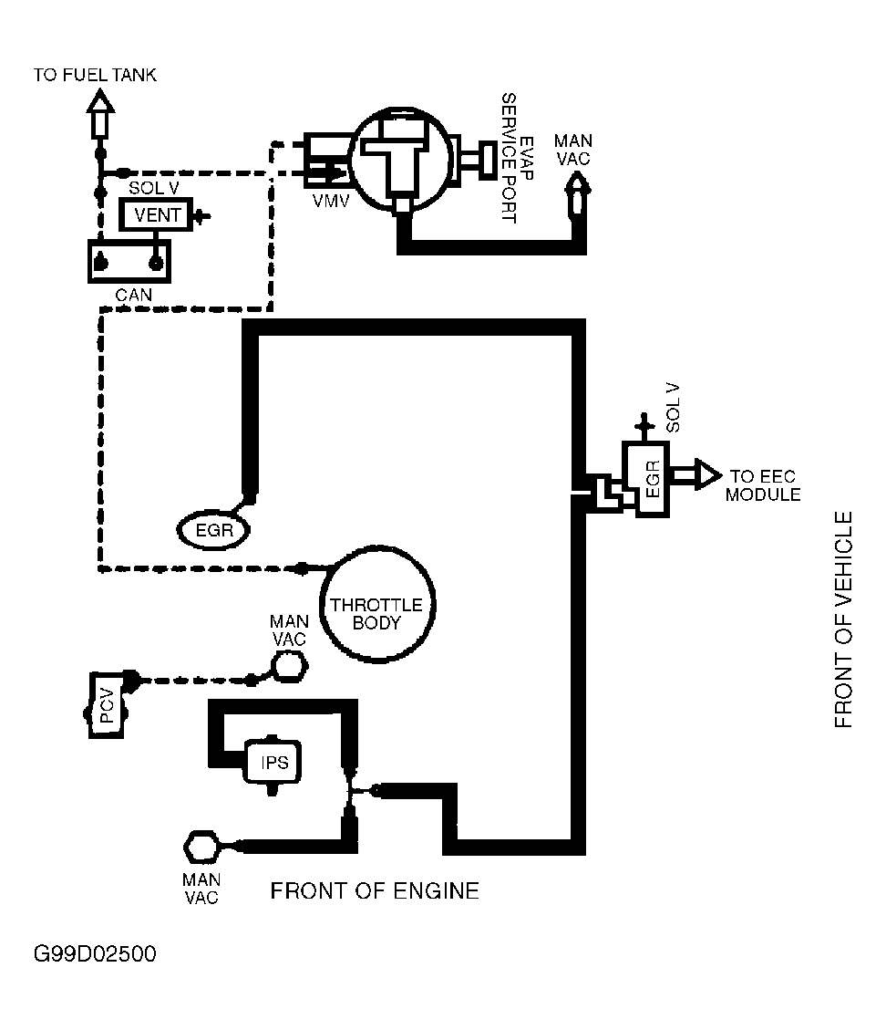 Fig 6: Vacuum Diagram (Contour & Mystique - 2.5L - California CARB Tier 1, Canada & 49-States - Except Calibration Nos. 9-LCA-AAD (MJJ3) - Code DZU & 9-LCM-AAC (KKT2) - Code DZU)