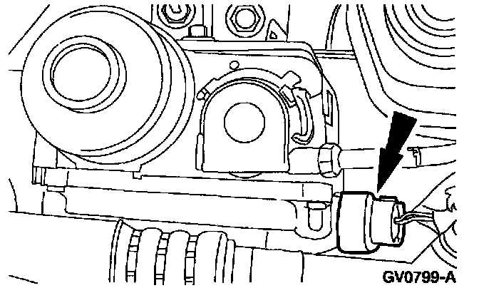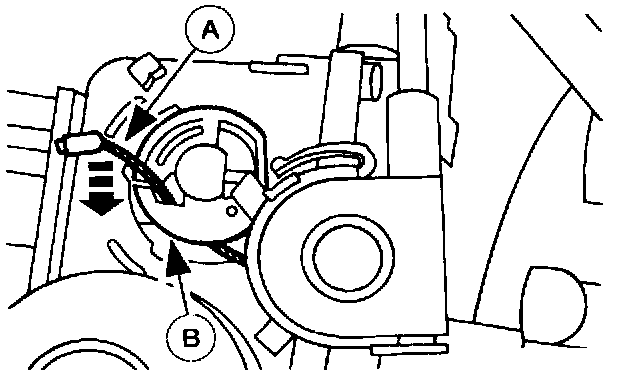 4. Slide the (A) speed control actuator cable end from the (B) speed control actuator cable groove and remove the speed control actuator cable.
