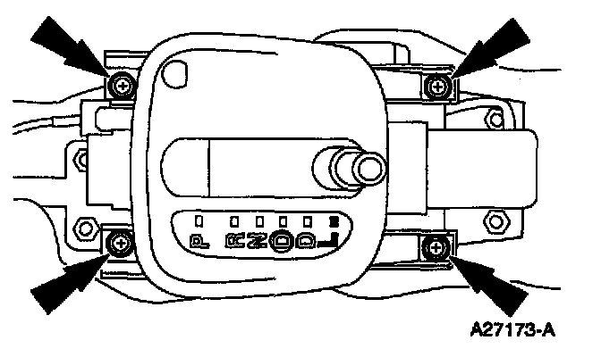 3. Place the gearshift lever in LOW and remove the four transmission control selector dial bezel screws.