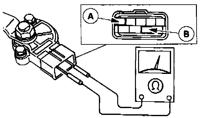 2. Connect an ohmmeter between (A) terminal A and (B) terminal H.