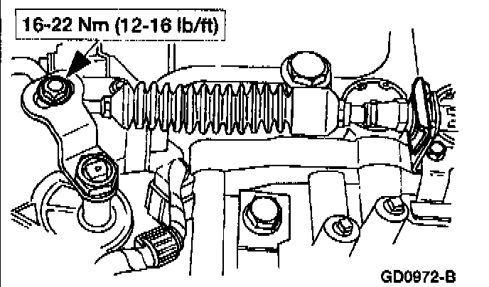 7. Install the shift cable and bracket and nut to specification.