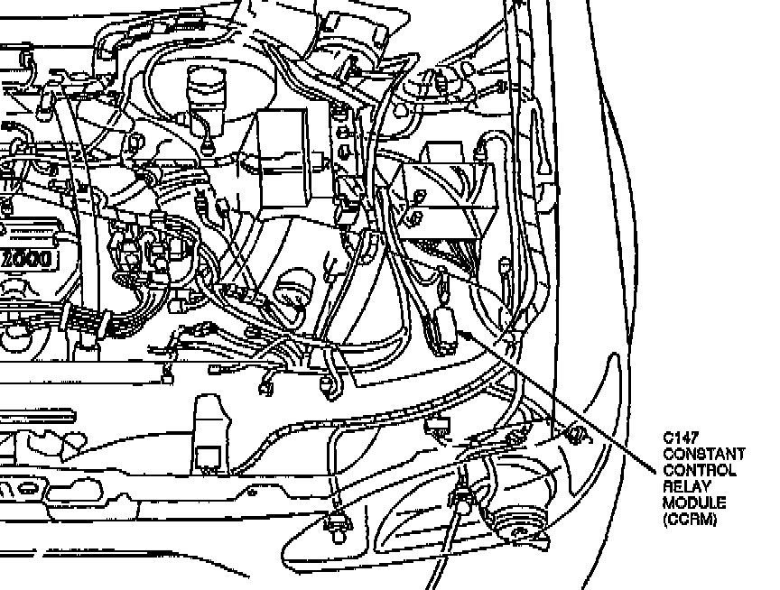 The Constant Control Relay Module is located at the LH front of the engine.