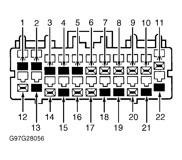 - Check Blue/Red Wire For Voltage - Using a voltmeter, check voltage between ground and RAP module 22-pin connector C404, terminal No. 12 (Blue/Red wire). See Figure . If voltage is more than 10 volts, go to next step. If voltage is 10 volts or less, repair Blue/Red wire between instrument panel fuse block and RAP module. Retest system operation.