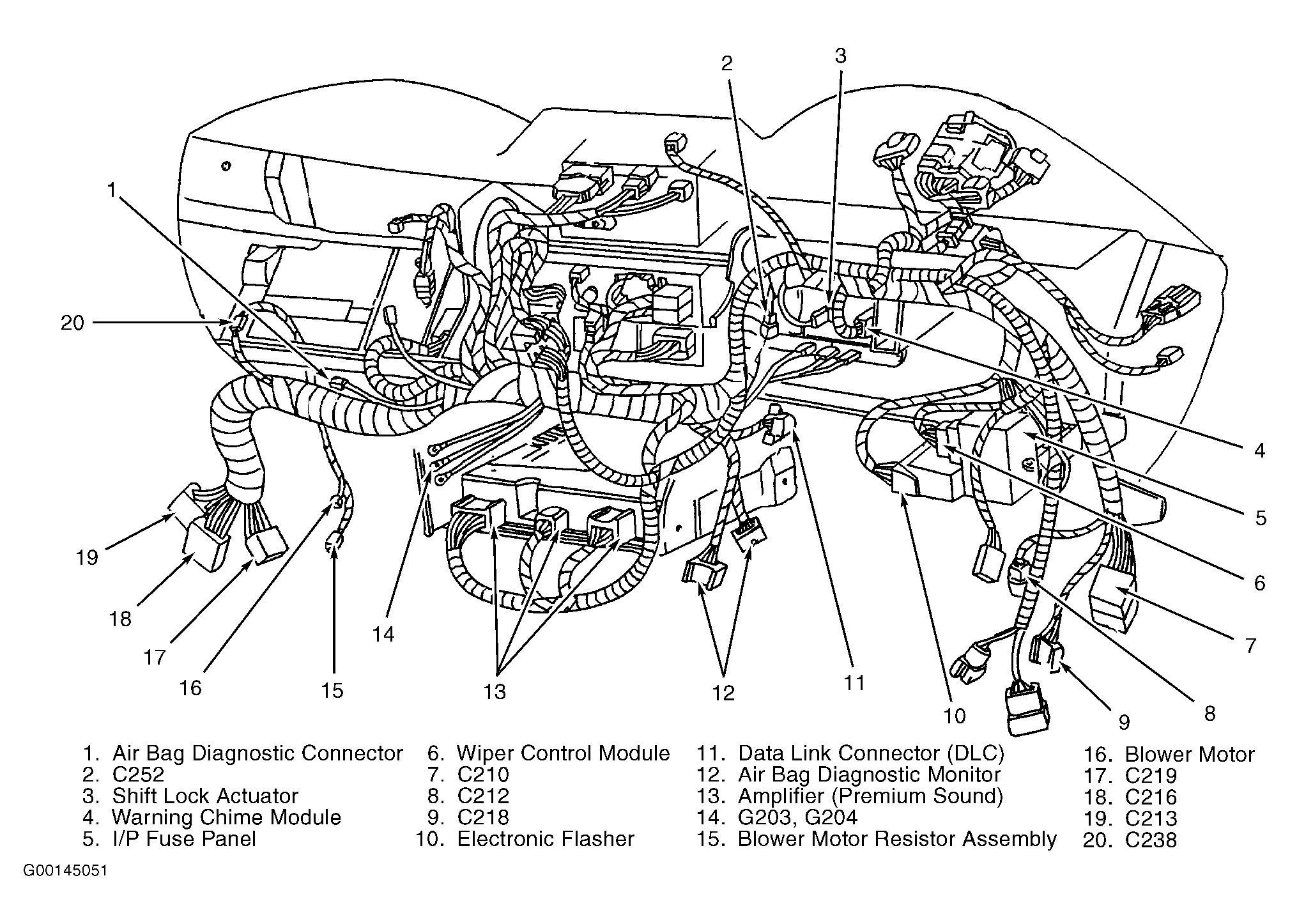 | I/P Fuse Panel | Behind dash, left of steering column. See Figure. |