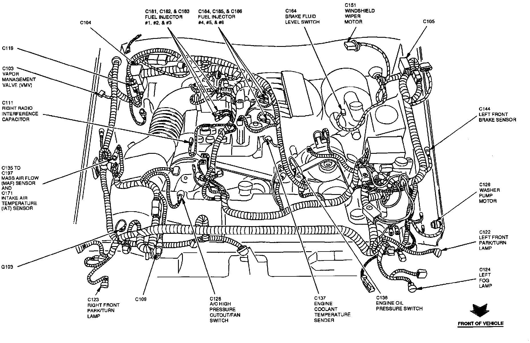 The Mass Air Flow Sensor is located at the RH side of the engine compartment, on rear of air cleaner assembly.