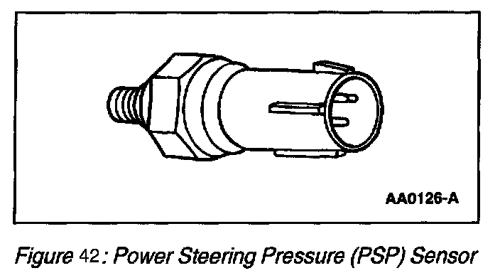 The Power Steering Pressure (PSP) sensor monitors the hydraulic pressure within the power steering system. The PSP sensor is a normally closed and opens as the hydraulic pressure increases. The PCM uses the input signal from the PSP sensor to compensate for additional loads on the engine by adjusting the idle rpm and preventing engine stall during parking maneuvers. Also, the PSP sensor signals the PCM to adjust transmission EPC pressure during the increased engine load, for example during parking maneuvers.