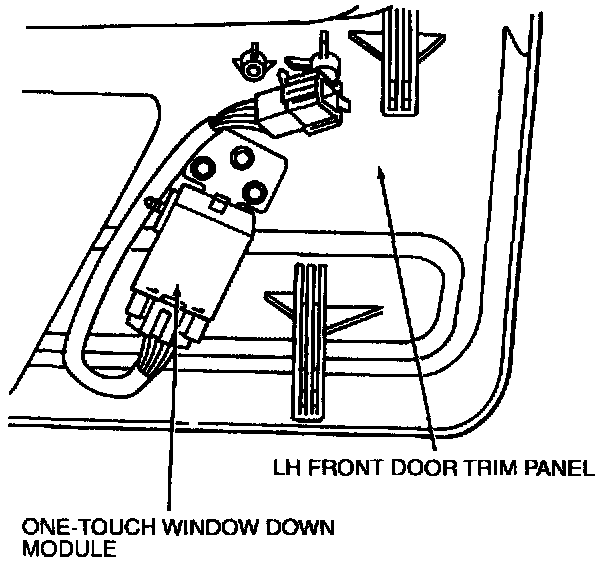 4. Disconnect wiring harness from one touch window down module. Remove one touch window down module.