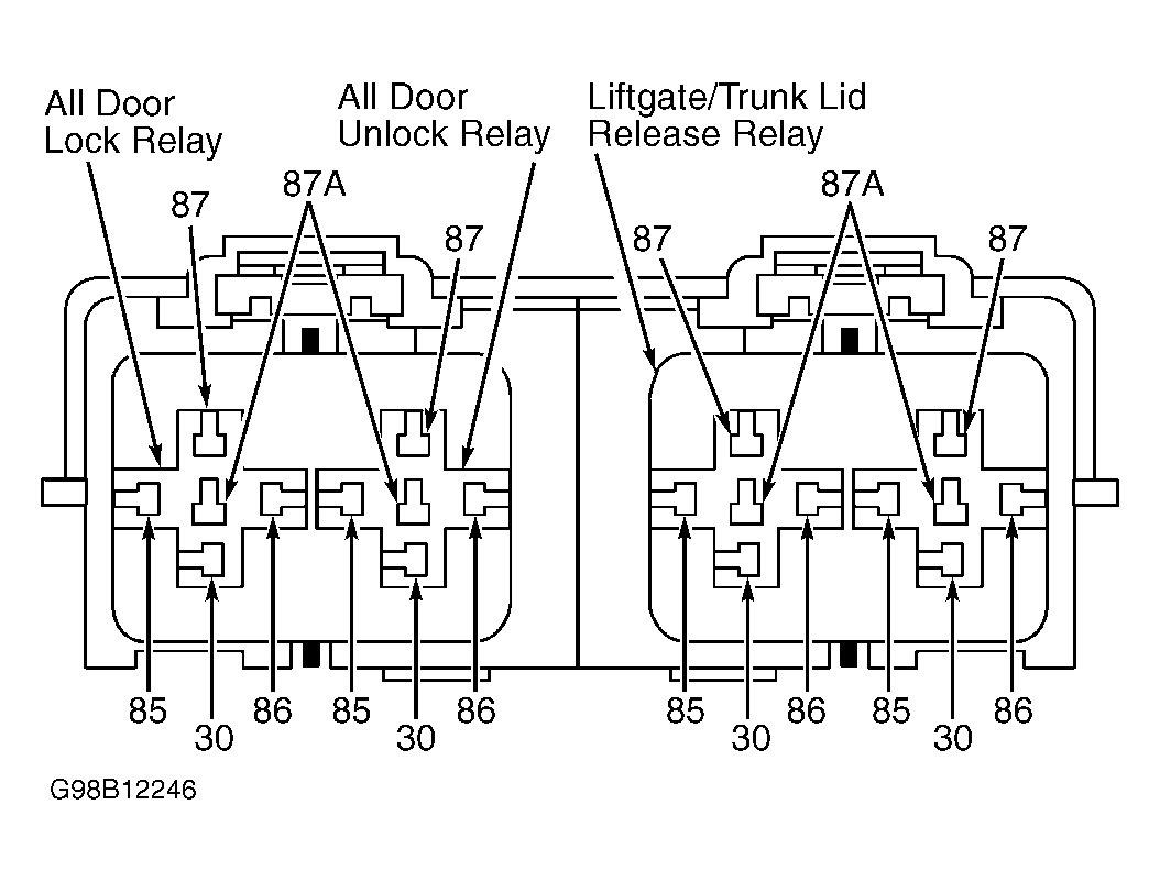 - Remove liftgate release relay. Test liftgate release relay. See RELAYS under COMPONENT TESTING. If relay is okay, go to next step. If relay is defective, replay liftgate release relay.