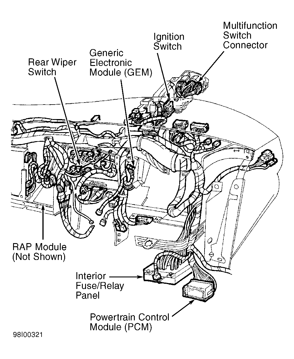 - Turn ignition off. Disconnect multifunction switch connector C259. Measure voltage between GEM connector C233, terminal No. 14 (Brown/White wire) and ground. If battery voltage does not exist, replace multifunction switch. Restore electrical connections and check system operation. If battery voltage exists, repair short to power in Brown/White wire. If Brown/White wire was shorted to power, GEM will be damaged internally. Repair short, replace GEM. Restore electrical connections and check system operation.