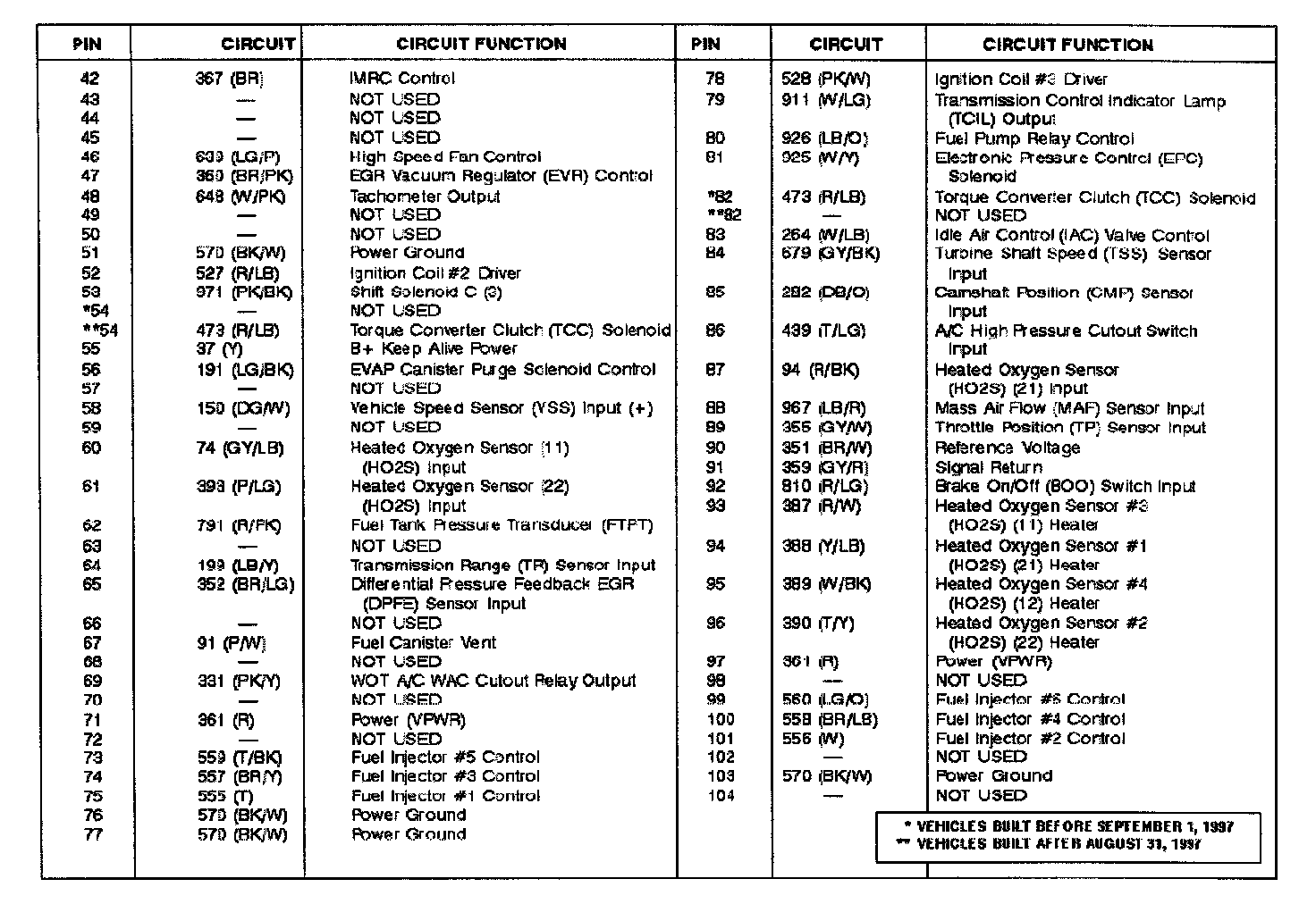 Windstar V6-3.8L VIN 4