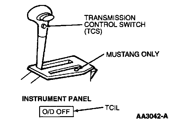 The Transmission Control Switch (TCS) signals the PCM with keypower whenever the TCS is pressed. On vehicles with this feature, the transmission control indicator lamp lights when the TCS is cycled to disengage overdrive. The operator of the vehicle controls the position of the TCS.
