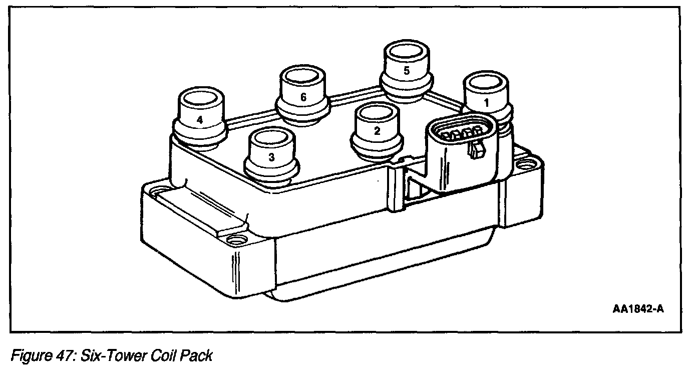 A coil in a coil pack is turned ON (for example is coil charging) by the PCM, and is turned OFF when firing two spark plugs at once. The spark plugs are paired so that as one spark plug fires on the compression stroke, the other spark plug fires on the exhaust stroke. The next time the coil is fired the order is reversed. The next pair of spark plugs fire according to the engine firing order.