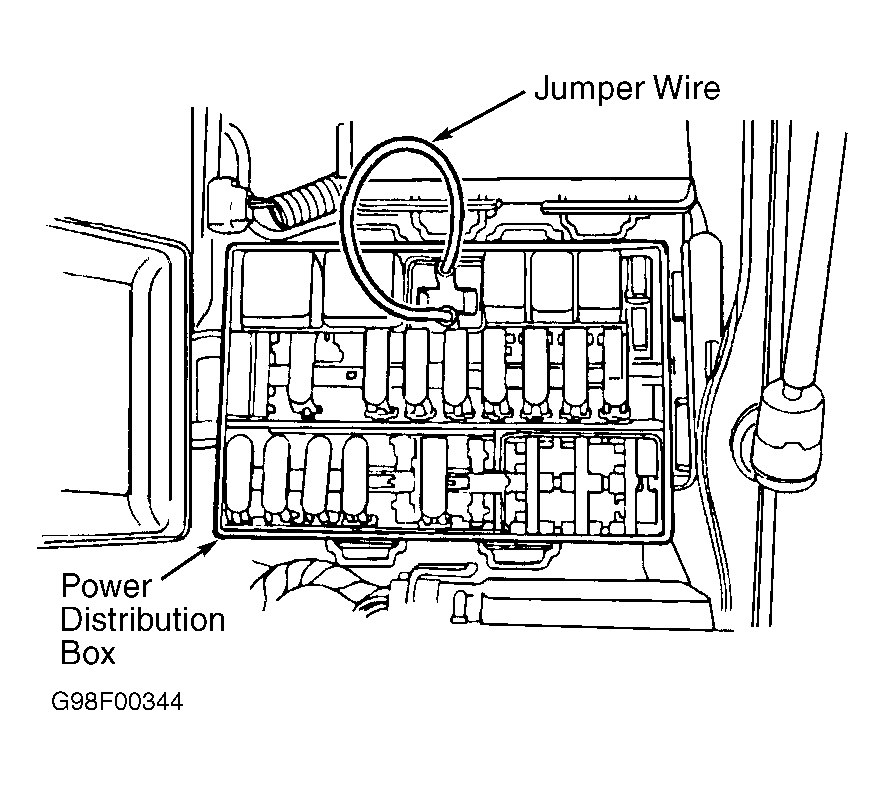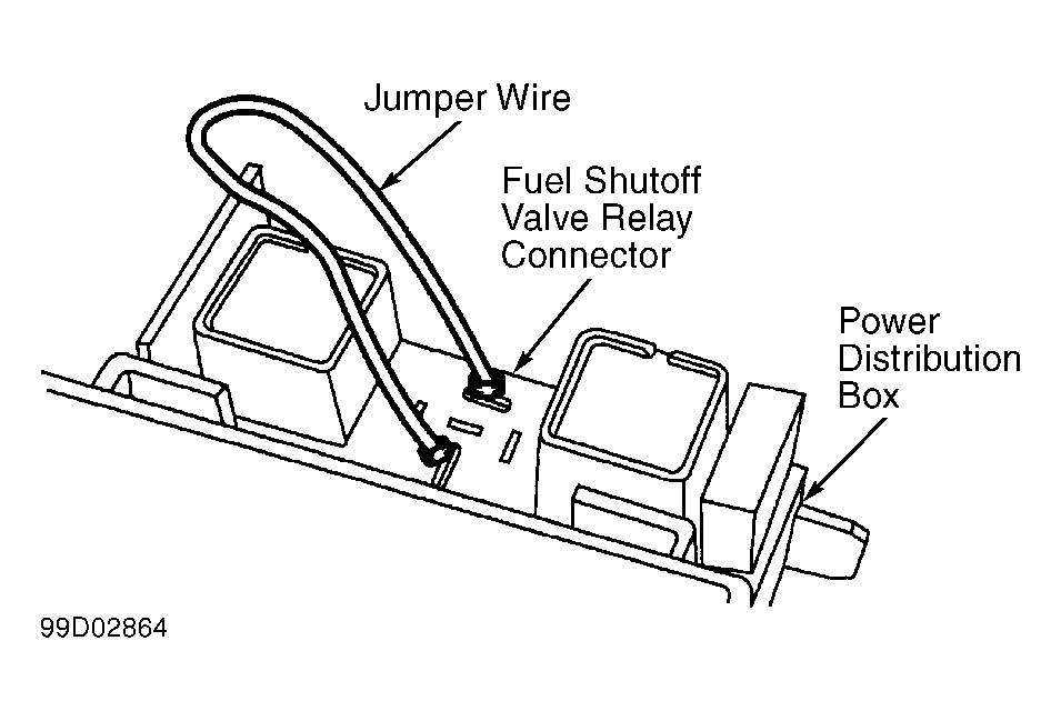 Turn ignition off. Remove Fuel Shutoff Valve (FSV) relay from power distribution box in engine compartment. To pressurize fuel system, connect a jumper wire between FSV relay socket No. 87 and 30. See Fig 1-Fig 3 . Remove jumper wire and reinstall FSV relay.NOTE: To identify Fuel Shutoff Valve (FSV) relay terminals, refer to numbers molded on relay. FSV relay is also referred to as fuel valve relay. - Using leak detector provided with Natural Gas Vehicle (NGV) Pressure Test and Vent Kit (134-00114), check for leakage at spring lock coupling and fuel rail-to-fuel injector connections. If a leak is detected, repair as necessary and retest.