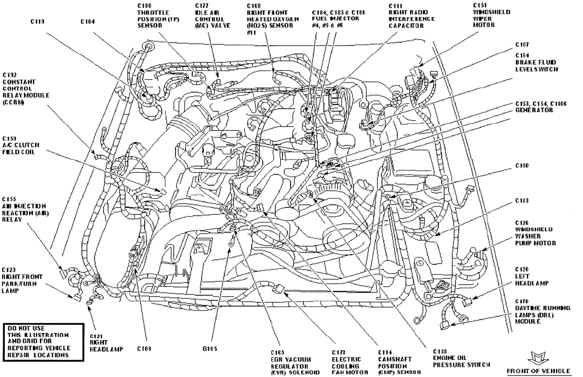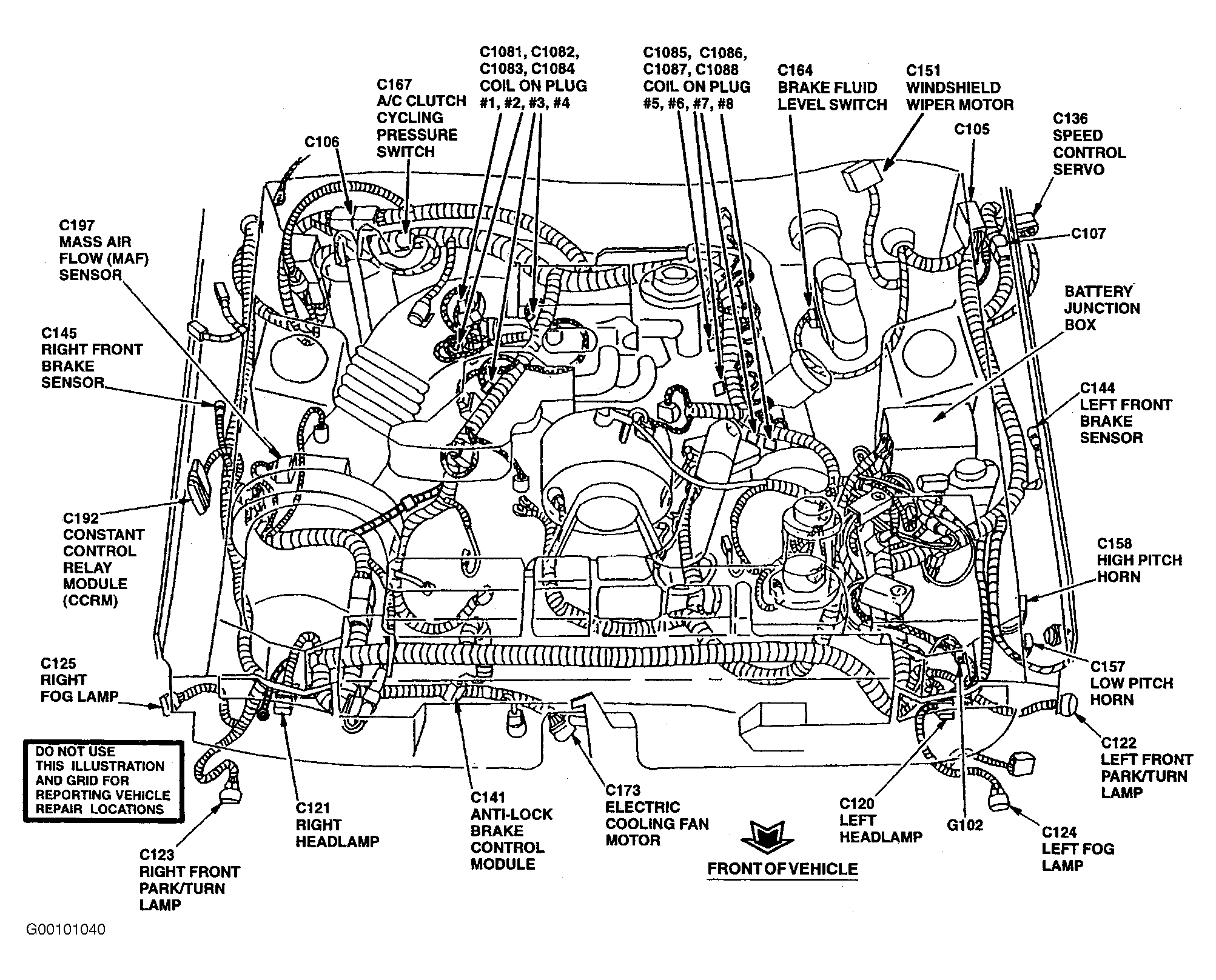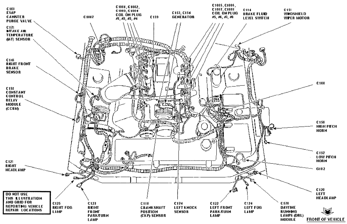 Fig 1: Locating Engine Compartment Electrical Components (4.6L - 4V)