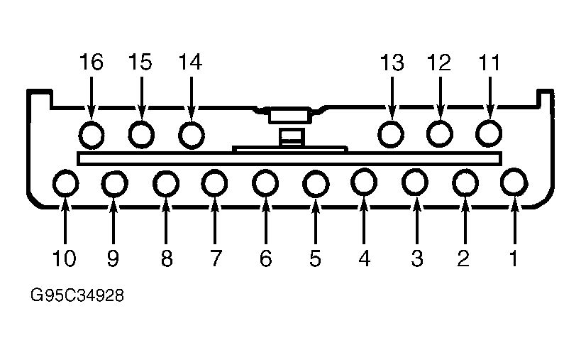 2. Disconnect PATS module harness connector C242. Measure resistance between ground and terminal No. 15 (White/Yellow wire) at PATS module harness connector C242. See Figure . Also, measure resistance between ground and terminal No. 16 (Black wire) at PATS module harness connector C242. If both resistance reading are greater than 10 k/ohms, replace PATS module and fuses. If resistance is 10 k/ohms or less, repair short to ground in appropriate between instrument panel fuse box and PATS module.