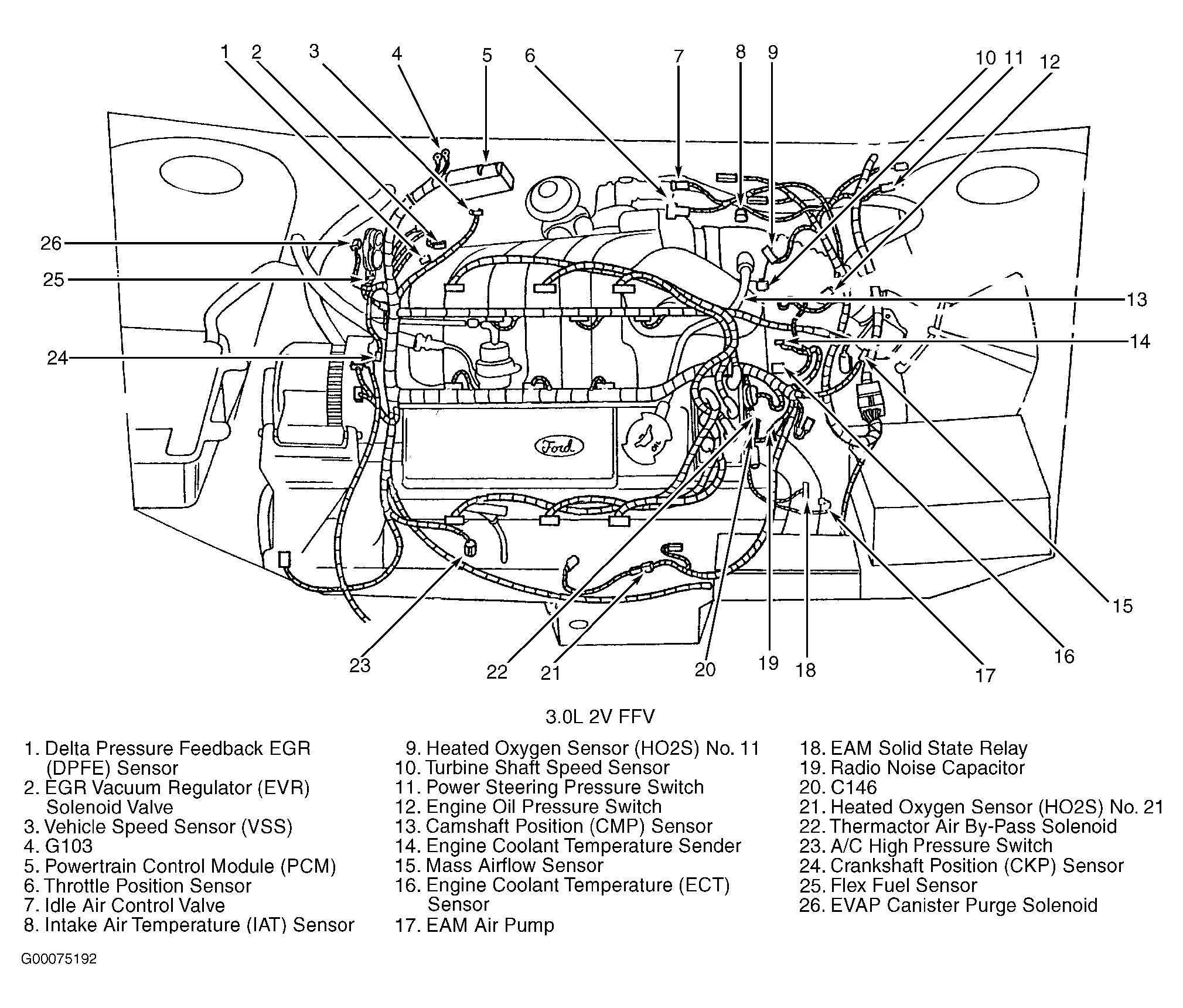 Powertrain Control Module (PCM) (3.0L 2V FFV) Right rear corner of engine compartment, mounted in firewall. See Figure .