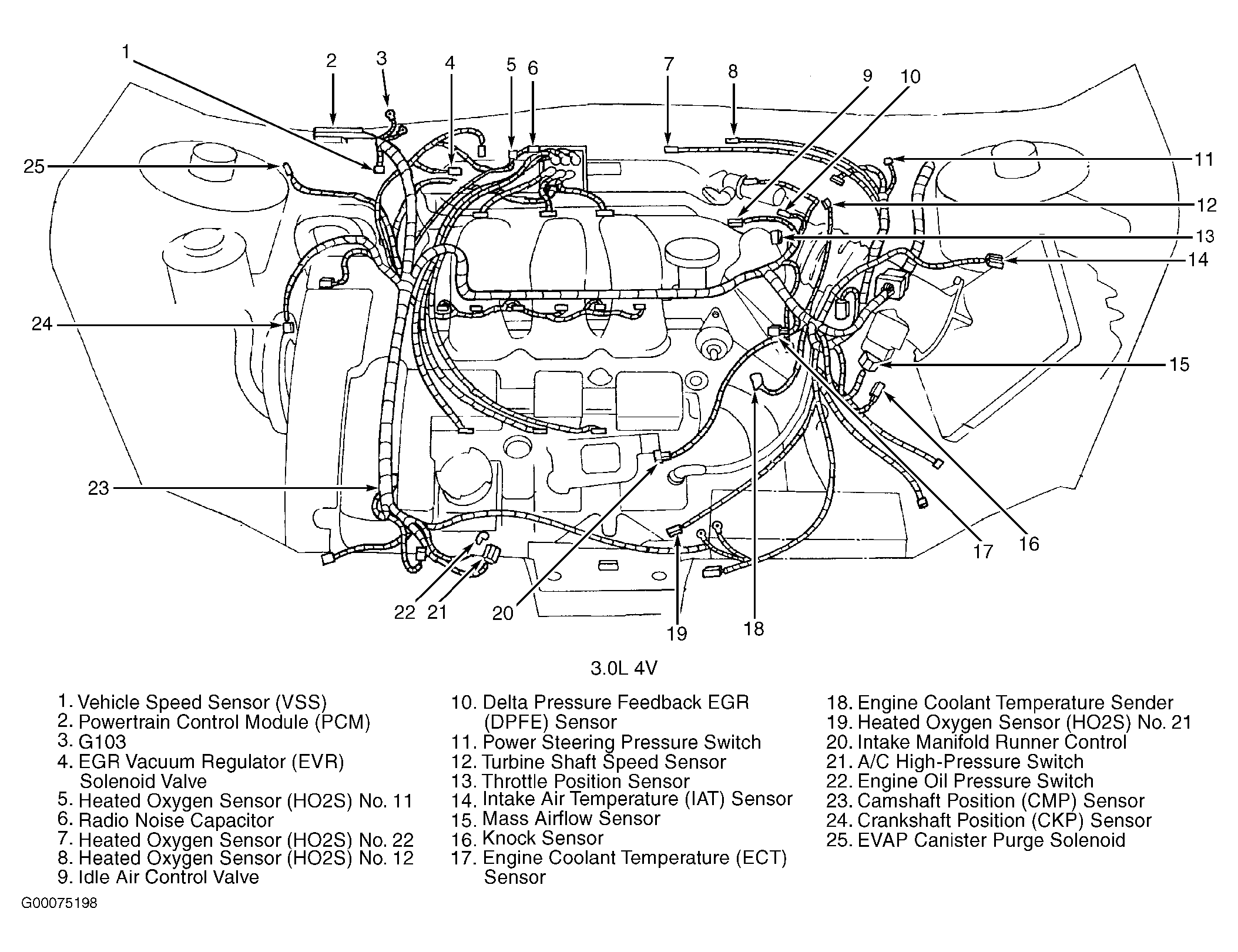 Powertrain Control Module (PCM) (3.0L 4V) Right rear corner of engine compartment, mounted in firewall. See Figure .