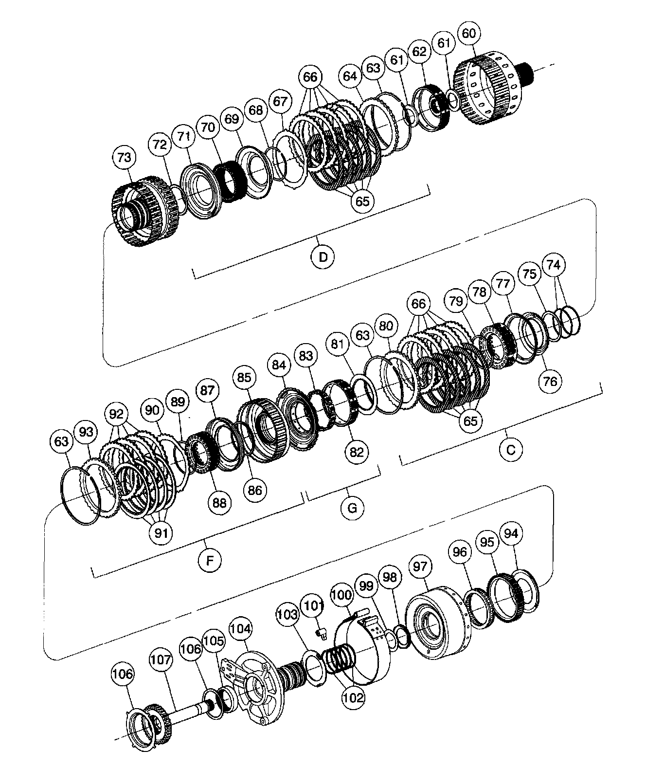 Transaxle, Automatic, AX4N-Disassembled View