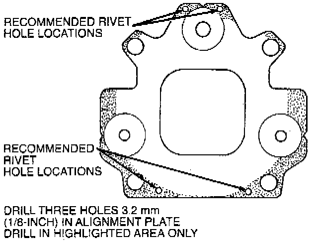 Drill three 3.2 mm (1/8 inch) holes through alignment plate and paint exposed metal.