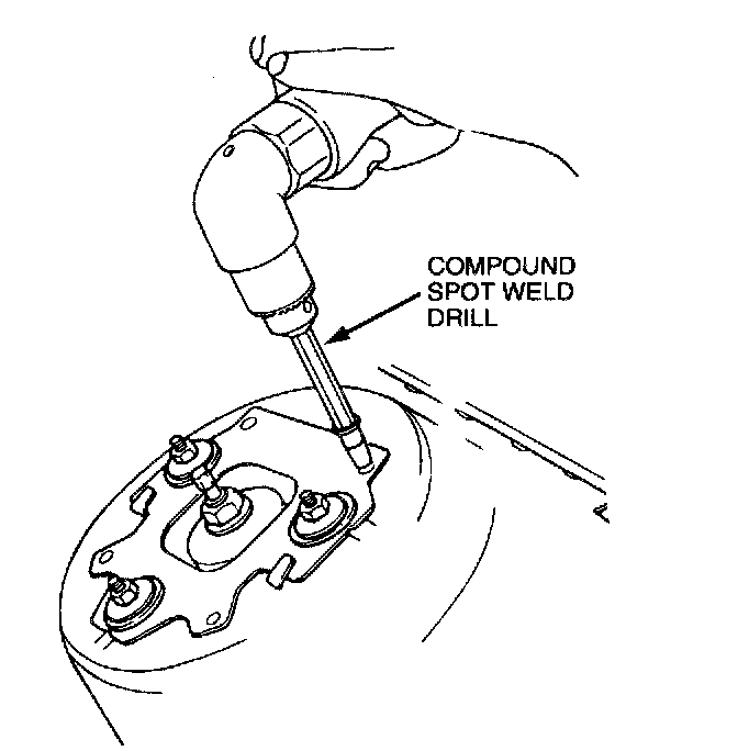 Use Rotunda Compound Spot Weld Drill Kit 107-R 1000 or equivalent to remove four welds.