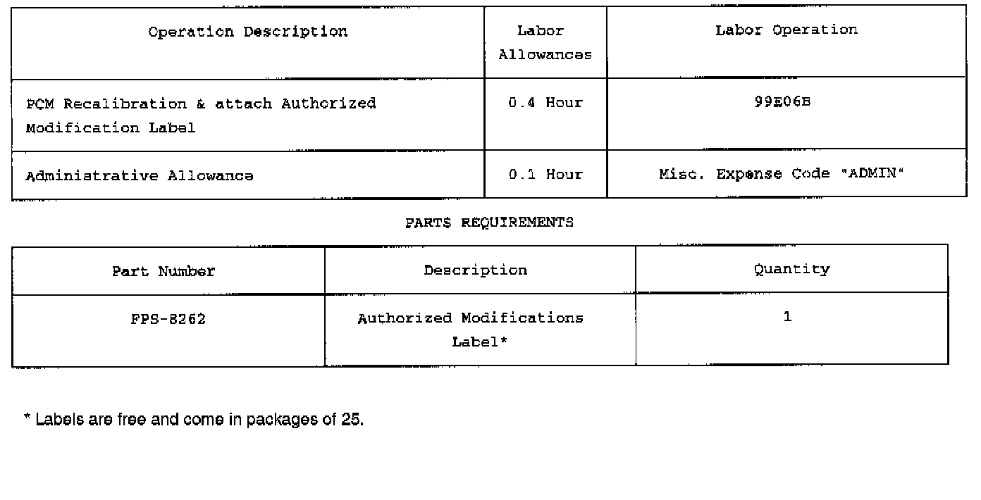 Attachment II - Labor and Parts Information