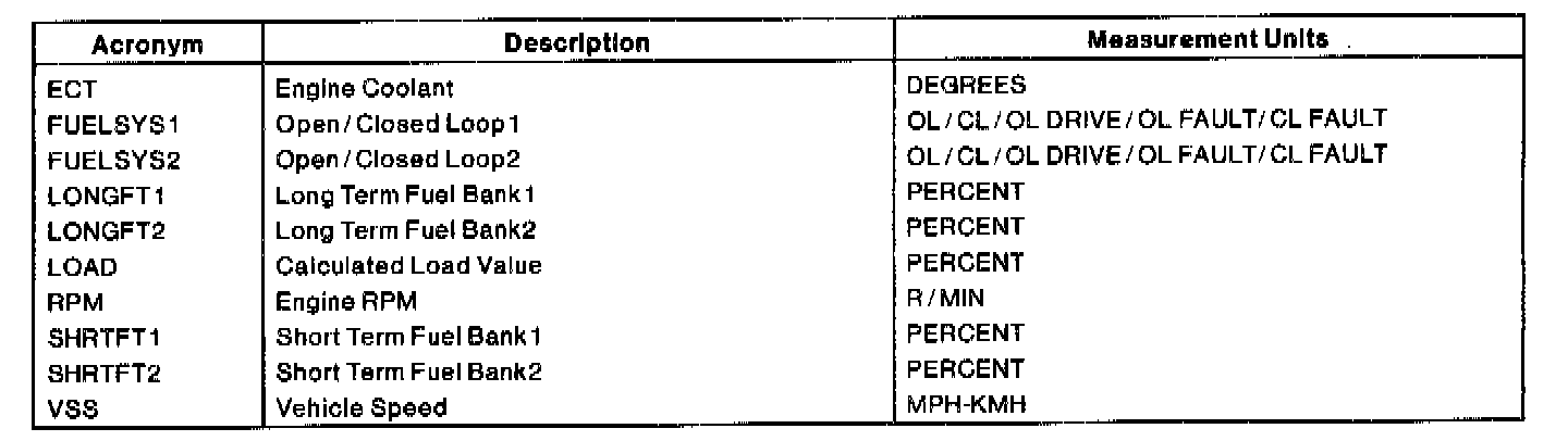 Home >> Ford >> 1999 >> Taurus V6-3.0L VIN U >> Repair and Diagnosis >> Powertrain Management >> Computers and Control Systems >> Testing and Inspection >> Scan Tool Testing and Procedures >> Freeze Frame Data