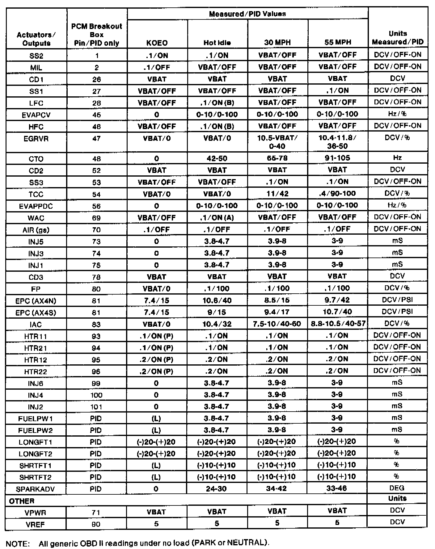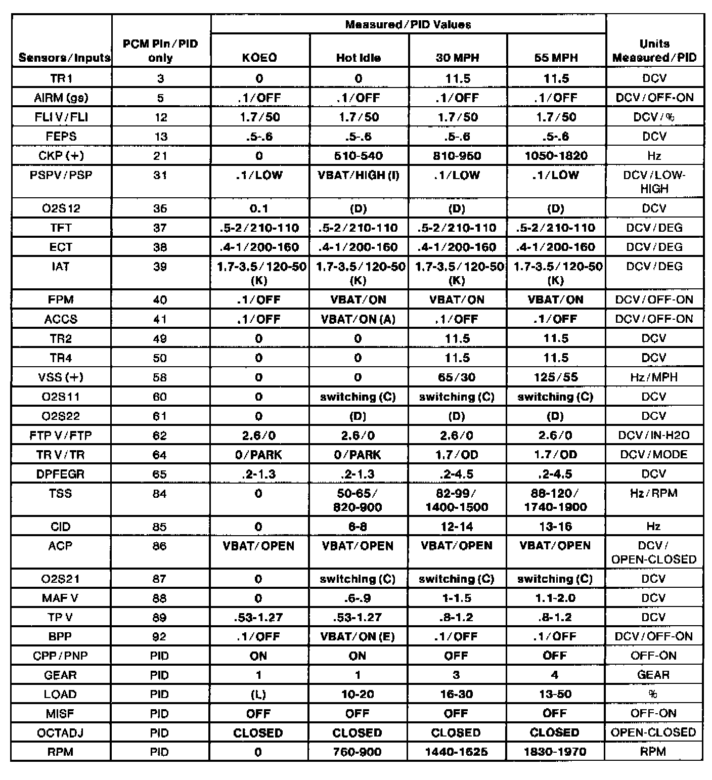 Home >> Ford >> 1999 >> Taurus V6-3.0L VIN U >> Repair and Diagnosis >> Powertrain Management >> Computers and Control Systems >> Testing and Inspection >> Scan Tool Testing and Procedures >> Normal Scan Data Values - Includes Pids