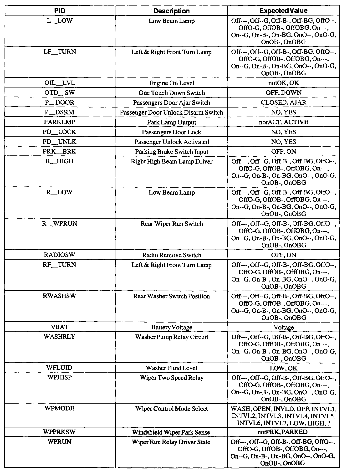 Diagnostic Trouble Code Descriptions