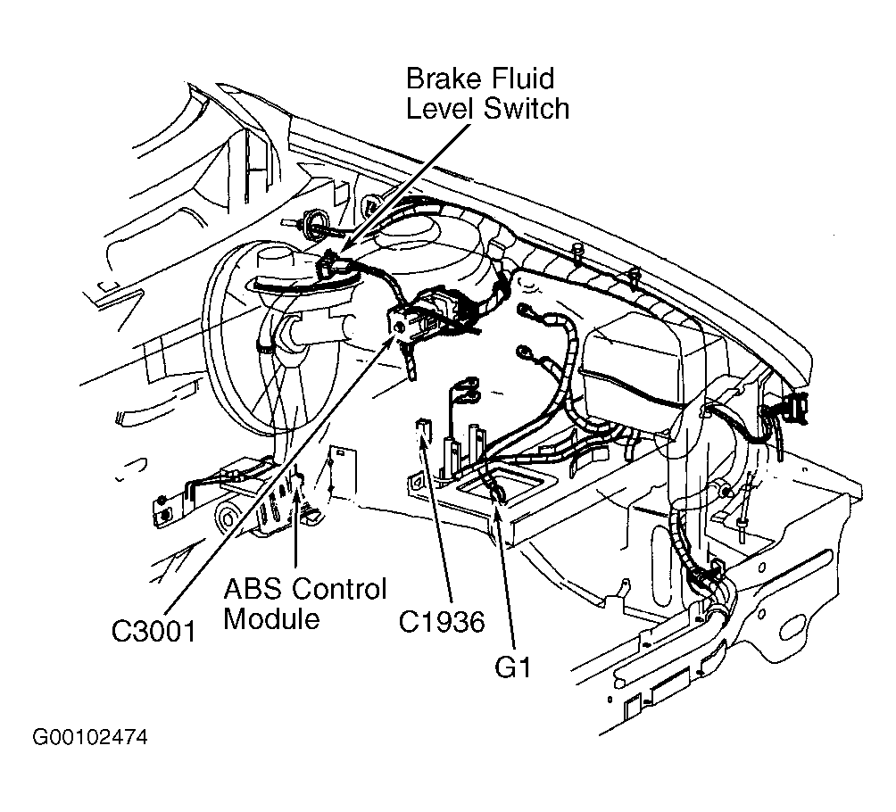 ABS Control Module In left rear of engine compartment, near brake booster. See Figure .