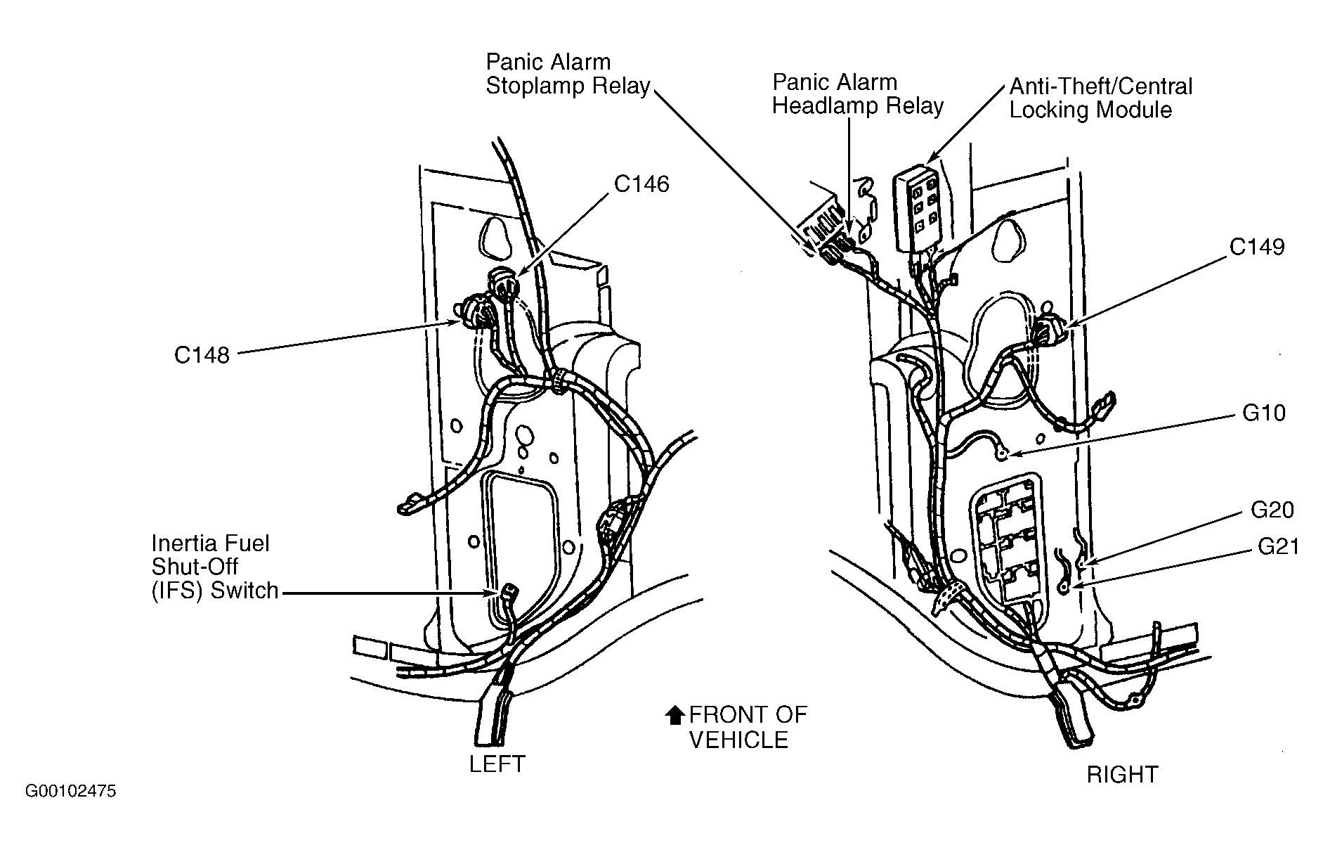 Anti-Theft/Central Locking Module On center of right "A" pillar. See Figure .