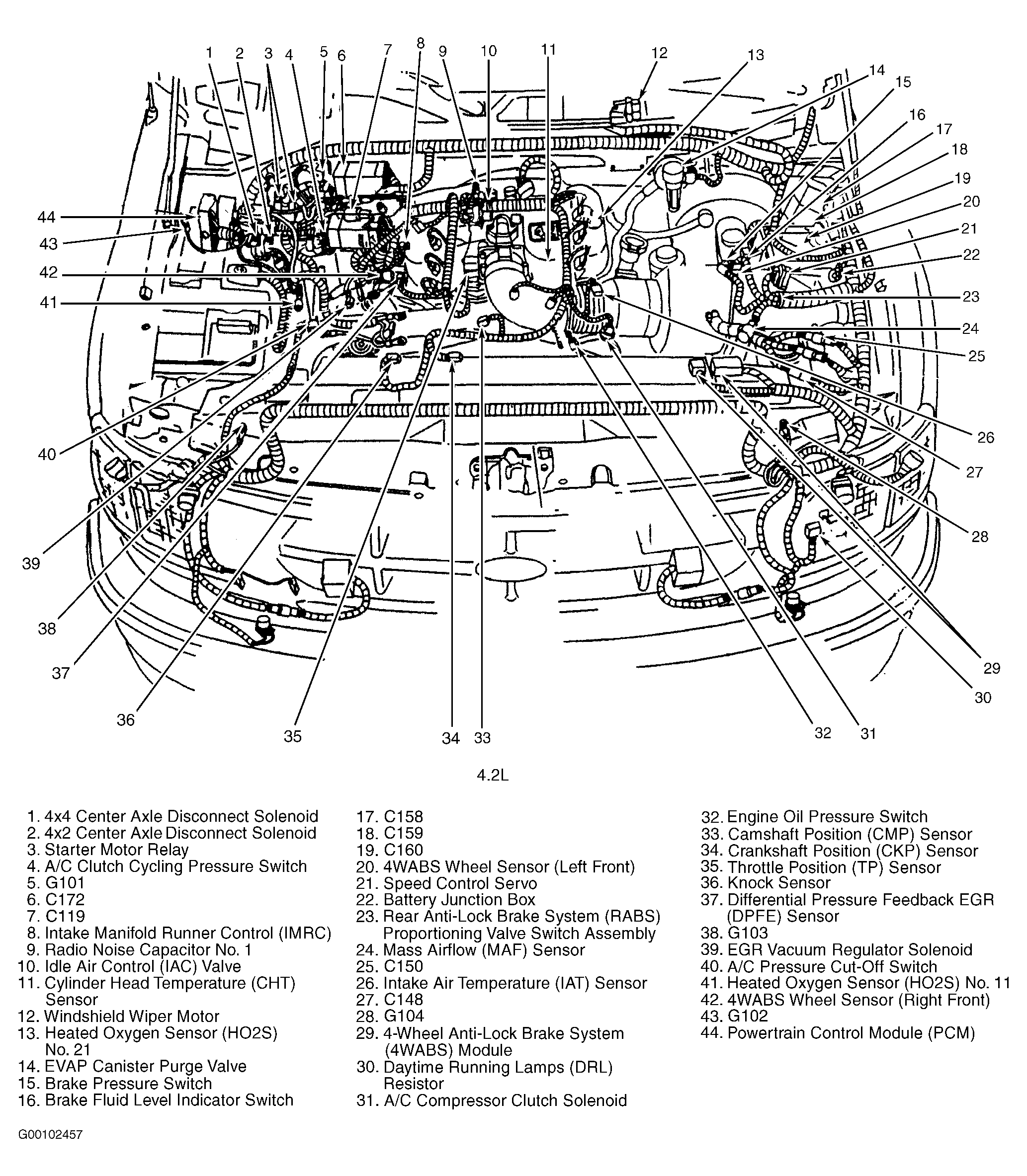 | Battery Junction Box (4.2L) | In left side of engine compartment. See Figure . |
