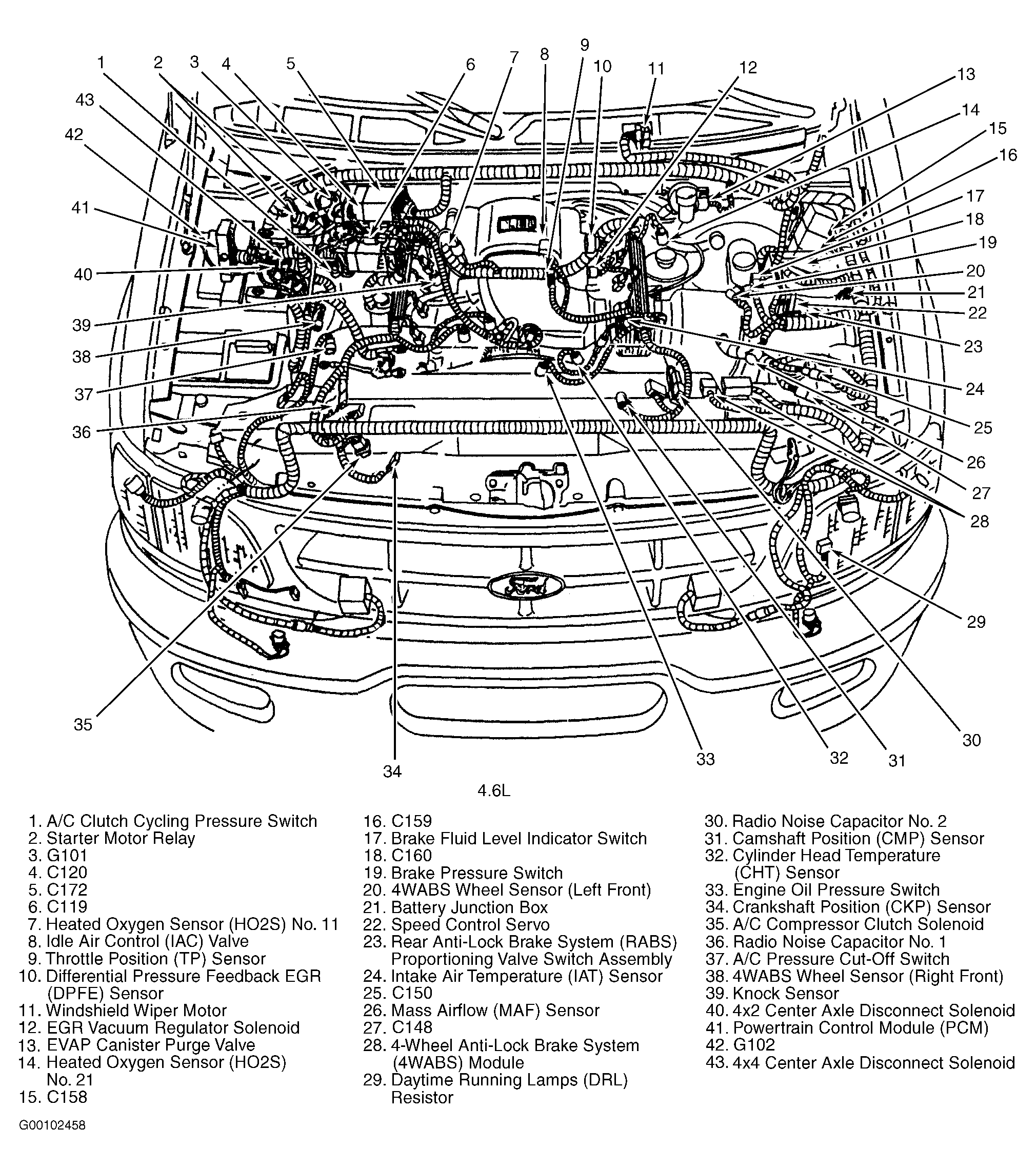 | Battery Junction Box (4.6L) | In left side of engine compartment. See Figure . |