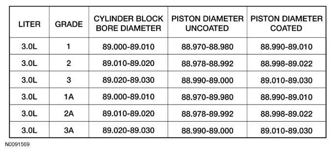 - Using the chart (Fig 17), select the correct piston grade size for the cylinder bores.