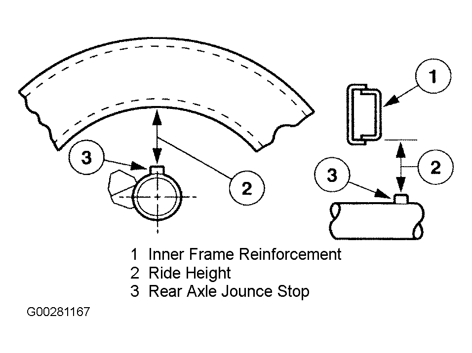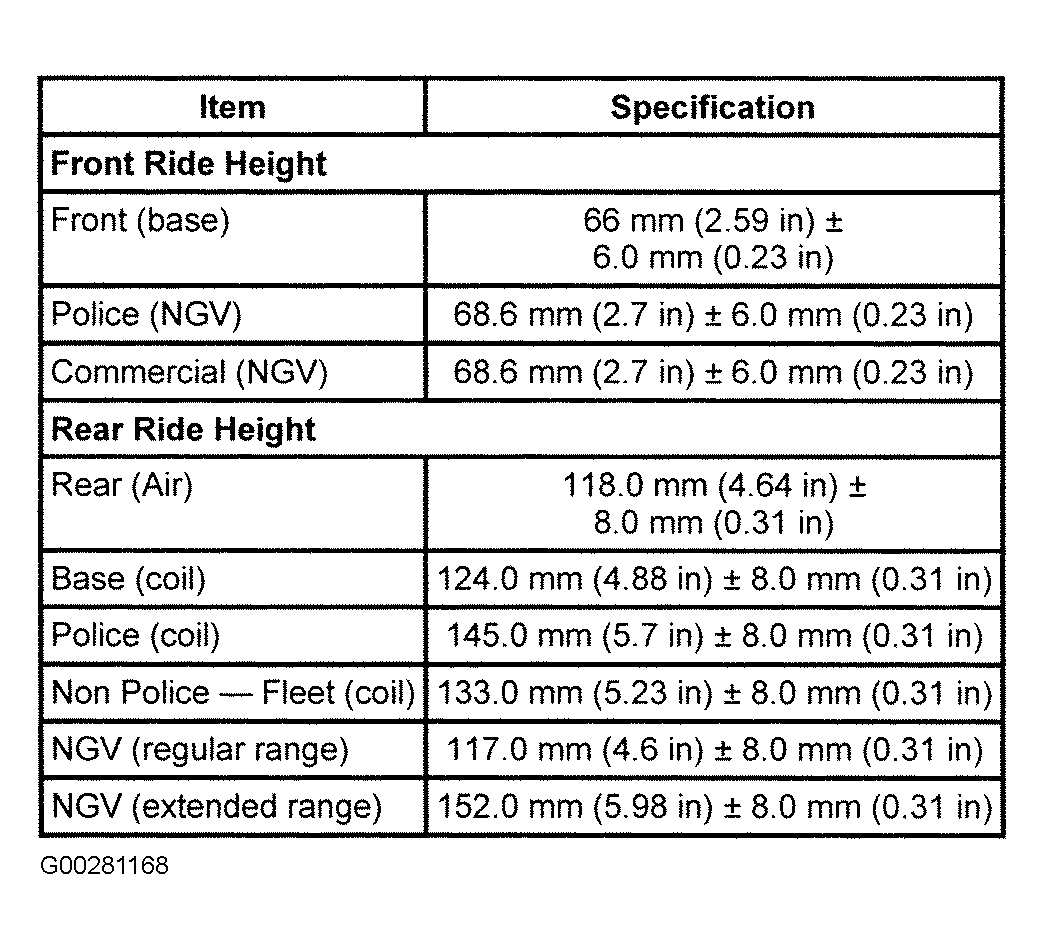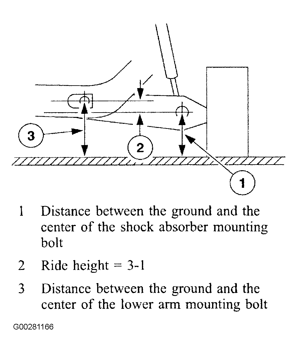 Vehicle ride height can only be measured accurately after accurate trim test has been performed using New Generation Star (NGS) tester, or equivalent scan tool. See appropriate ELECTRONIC article in SUSPENSION. To calculate ride height, see Fig 1 and Fig 2 . For ride height specifications, see Fig 3 . If ride height does not meet specification, and no unusual load is present, check for damaged components or non-standard replacement suspension components.