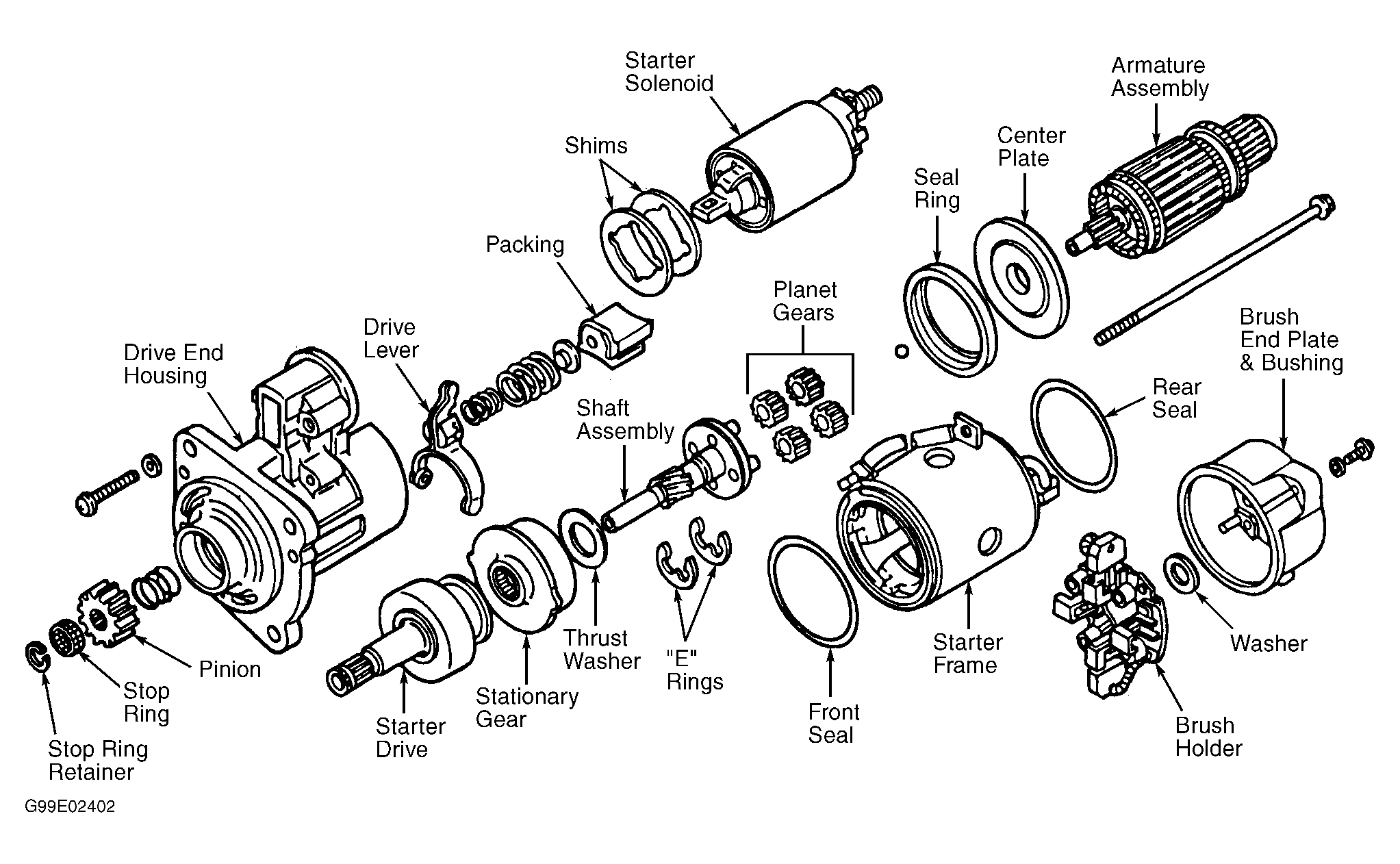 Use illustration for exploded view of starter motor assembly. See Fig 1 .