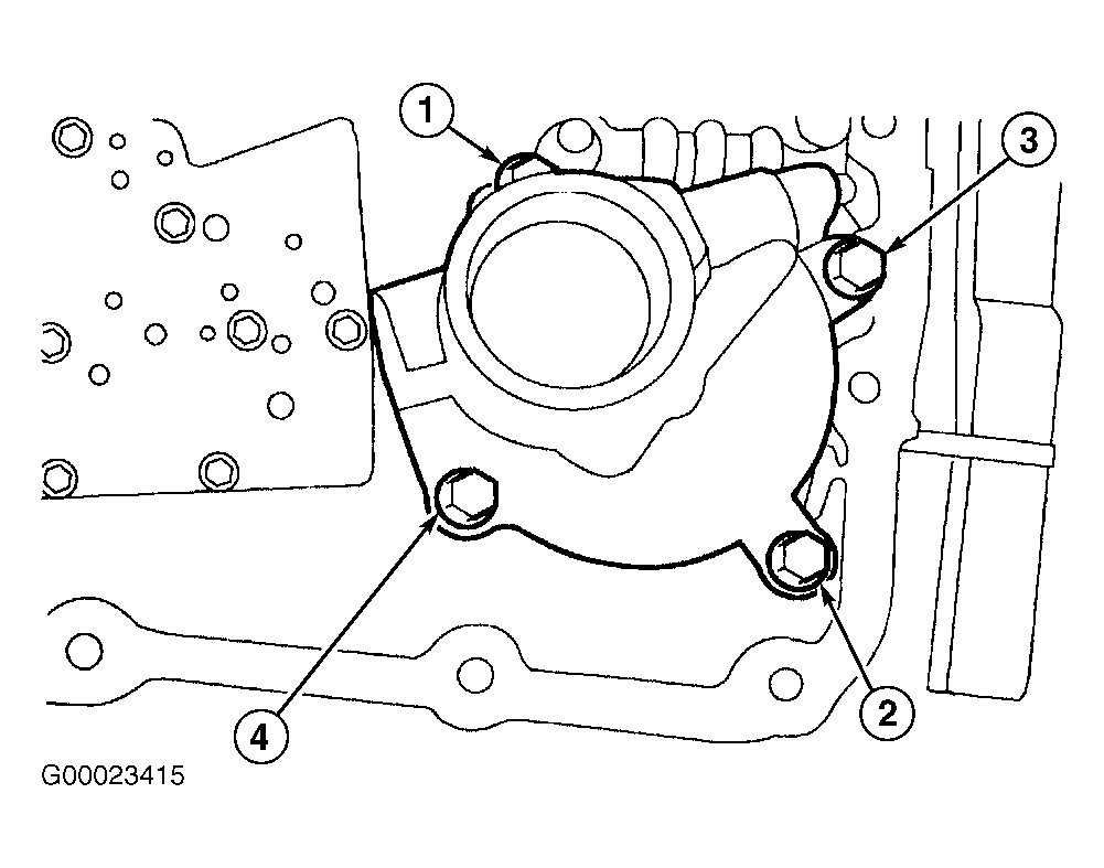 - Install the low/reverse band servo cover (3). Loosely install the low/reverse band servo piston cover screws. Tighten the servo cover screws in the sequence shown. See Fig 2 .
