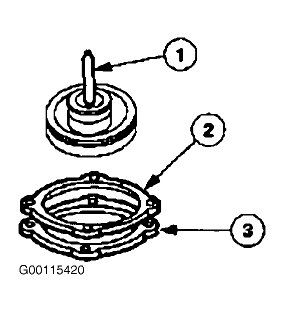 - Install the low/reverse band servo piston and rod assembly (1). See Fig 1 . Install a new low/reverse band servo separator plate cover gasket (2).