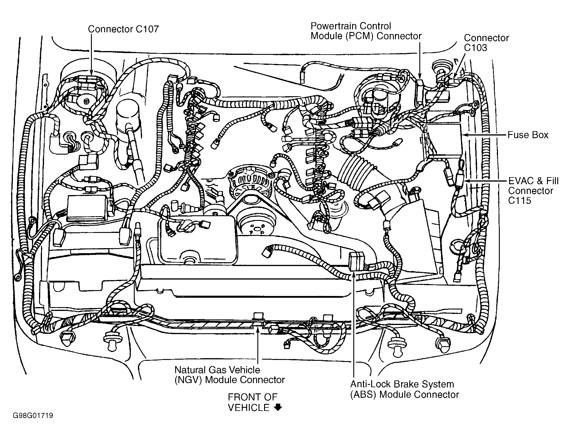 Fig 1: Locating Engine Compartment Harness Connectors