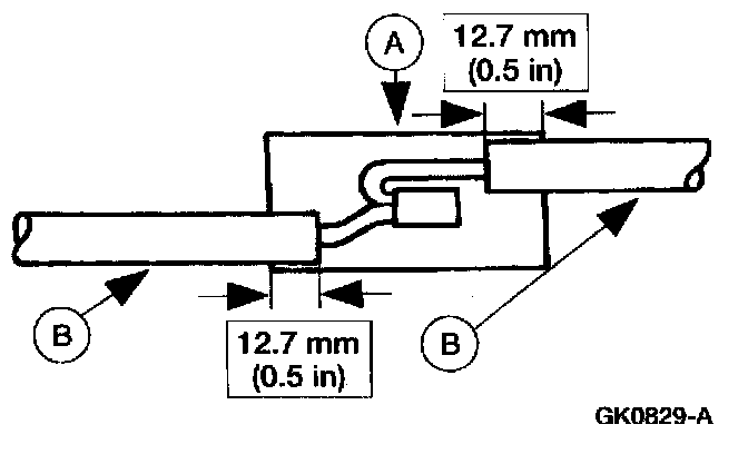 5. Position the (A) heat shrink tube over the (B) wire repair.