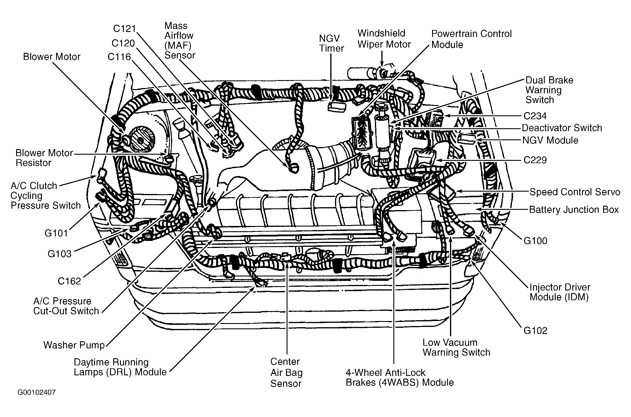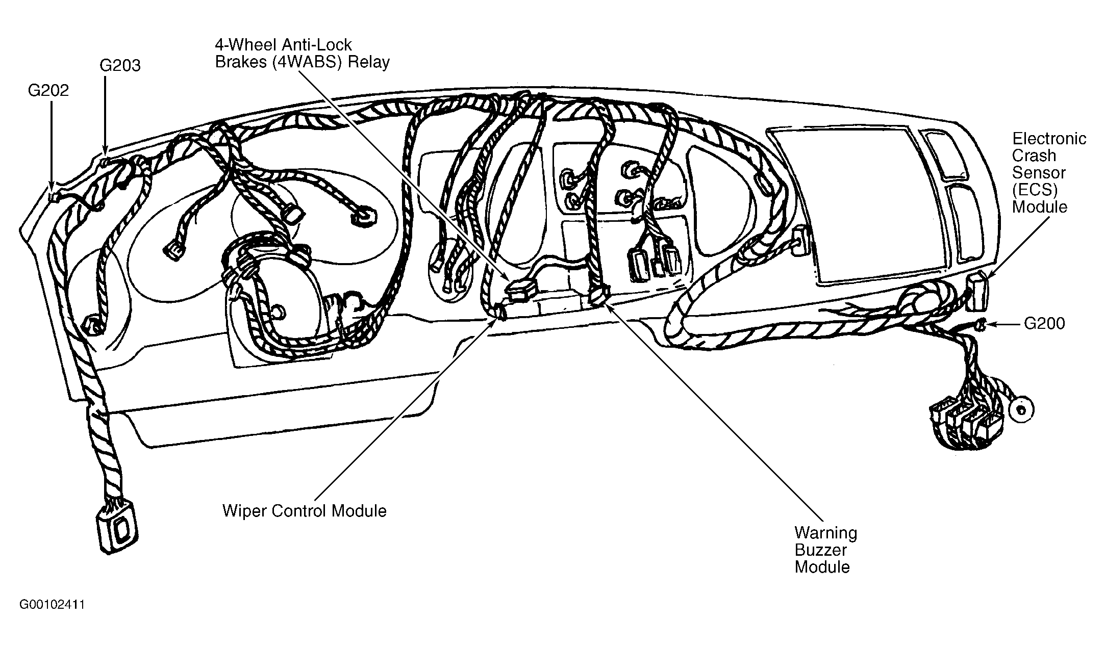 | 4-Wheel Anti-Lock Brakes (4WABS) Module | On left front frame rail. See Figure. |