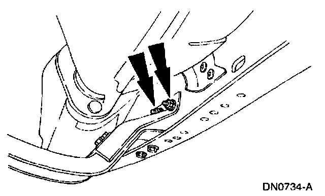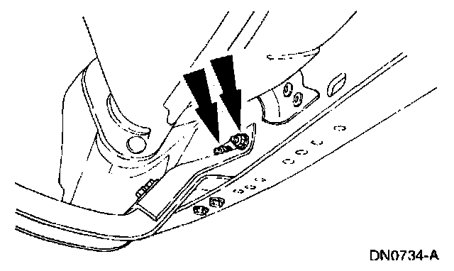 2. Loosely install the transmission support crossmember nuts and bolts (RH side).