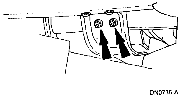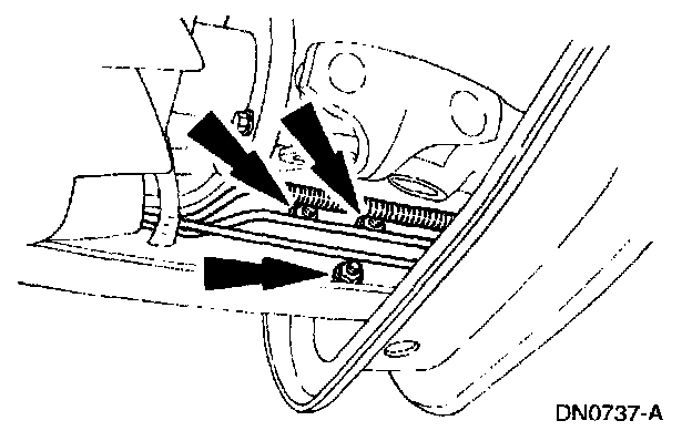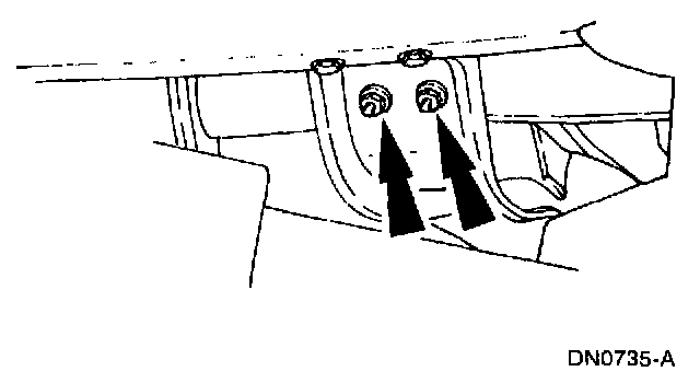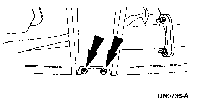 7. Remove the transmission support crossmember nuts and bolts (RH side).