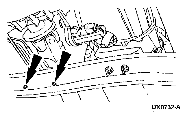 8. Remove the transmission support crossmember nuts and bolts (LH side).