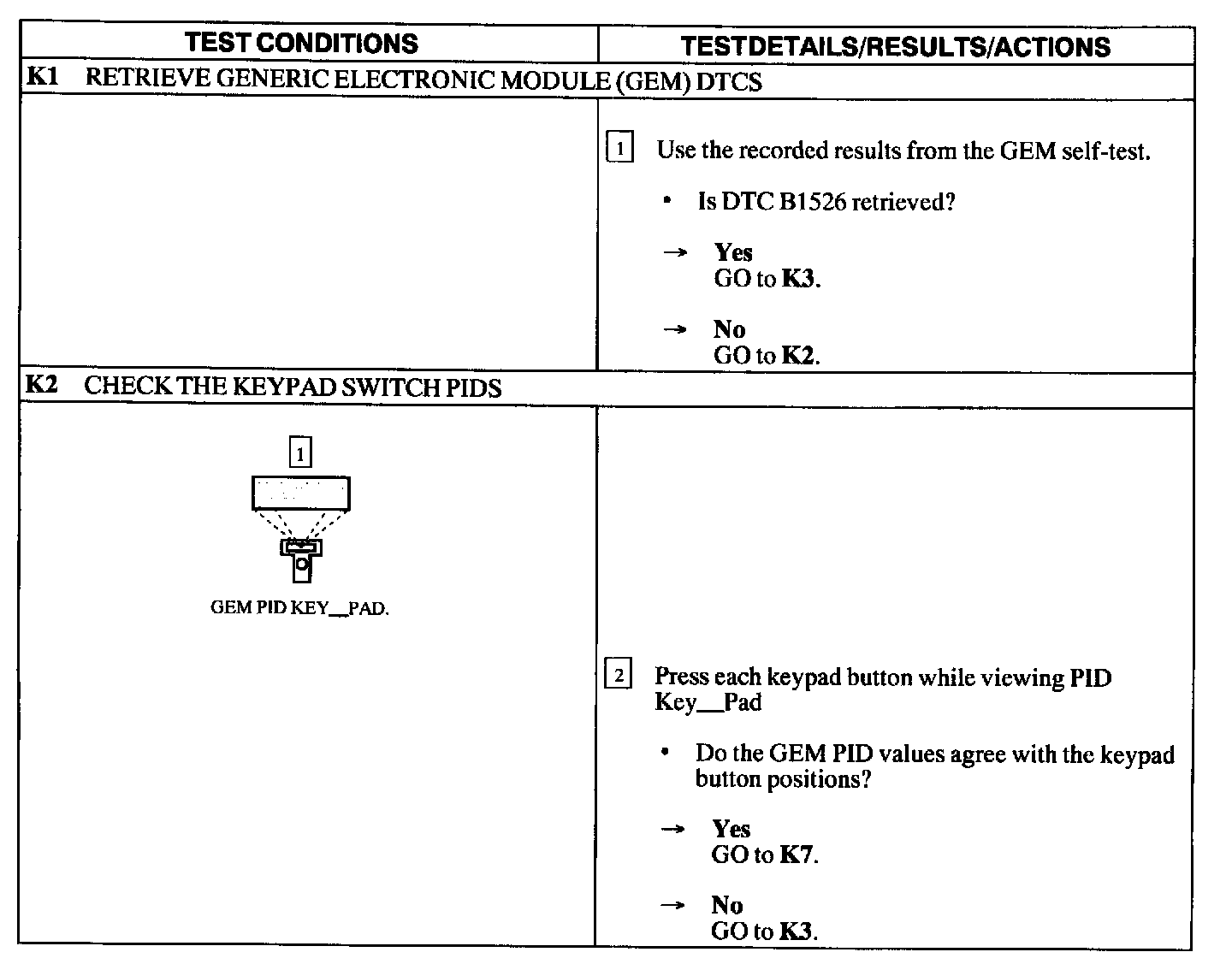 Test K: Doors Do Not Lock/Unlock Using The Keyless Entry Keypad