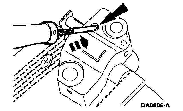 2. Using a small screwdriver or pick, push back and hold the ratchet mechanism.