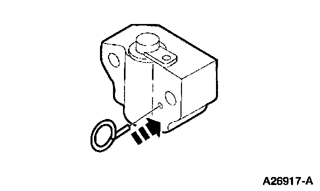 4. Install a paper clip into the hole in the tensioner housing to hold the ratchet assembly and plunger in during installation.