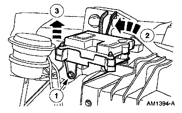 CAUTION: Position the temperature blend door manually to properly align the actuator and the door. Do not power the actuator electrically. If it is not engaged with the temperature blend door, damage to the actuator may occur.