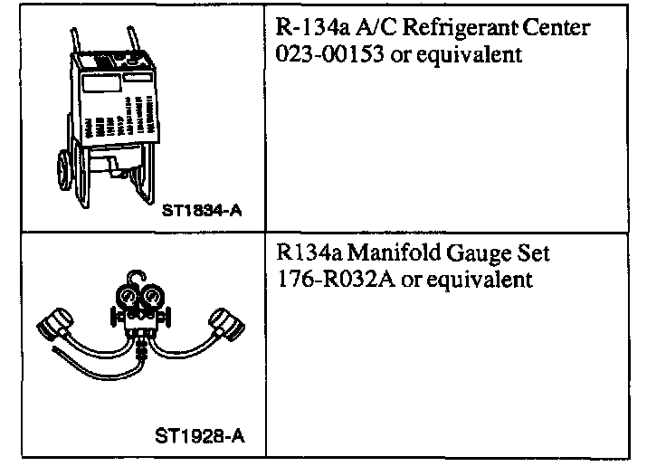 2 .Connect the R- 134a A/C Refrigerant Center to the low- and high-pressure service gauge port valves.