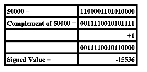 If the value is >32767 then complement (change 0's, 1's and 1's to 0's and a negative sign.